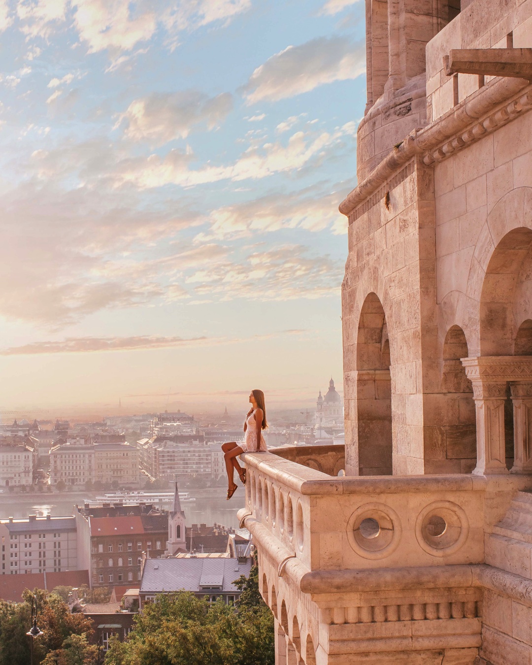 We then walked over the bridge and up to the Fisherman’s Bastion around 6.15 am, where there were only a few other photographers. At that moment I realized how truly beautiful this 120-year-old monument really is! I felt like a princess overlooking the city from her castle atop the hill. If you plan a trip to Budapest, visiting the Fisherman’s Bastion at sunrise should be on top of your must-do list! The Matthias Church nearby also looked amazing in the soft morning light with its glowing and colourful bricks.